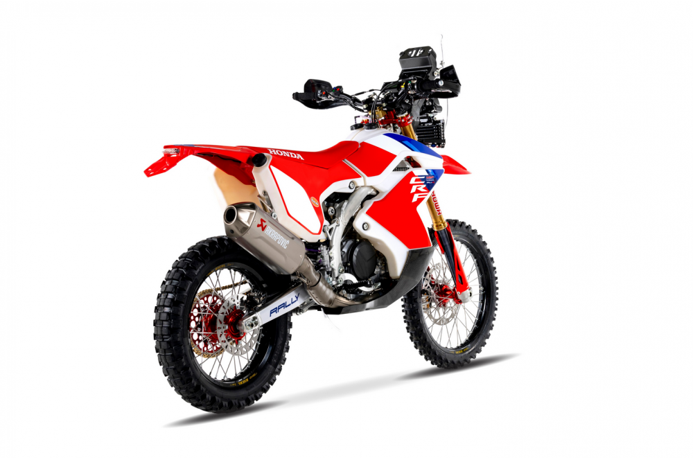 Le silencieux d'échappement en titane, développé par Akrapovič, est le même que celui utilisé sur la CRF Rally officielle, offrant des performances de puissance identiques. Les collecteurs et les tubes de raccordement sont quant à eux fabriqués directement par HRC.